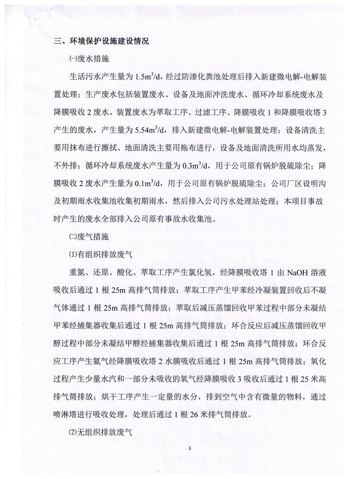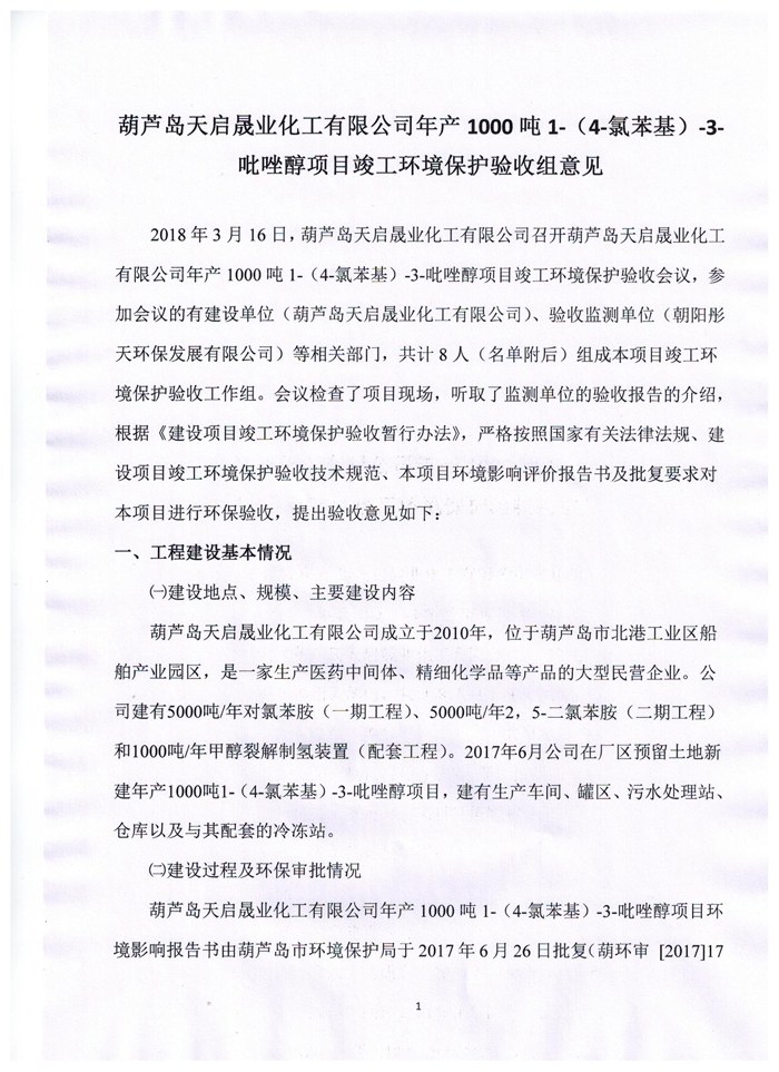 | 5000吨/年2,5-二氯苯胺部分 | 葫芦岛市环境保护局 | 2011年6月23日 | 葫环审[2011]43号 | 葫芦岛市环境保护局 | 2017年1月10号 | 葫环验[2017]2号 |