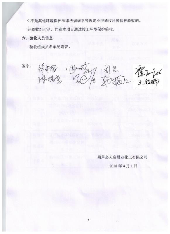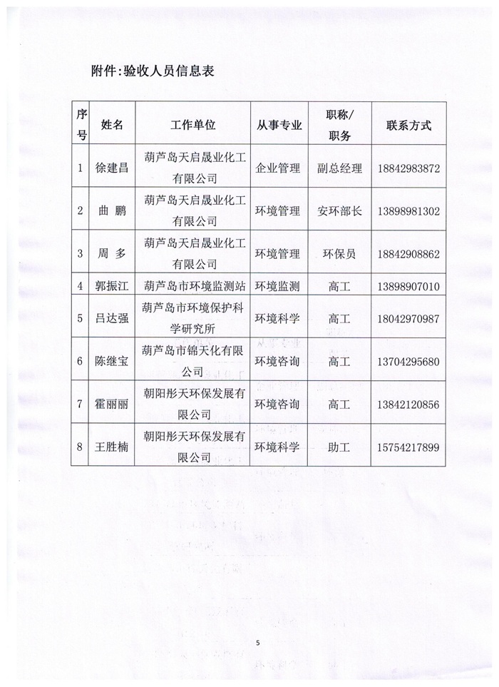 | 单位名称 | 葫芦岛天启晟业化工有限公司 | |||